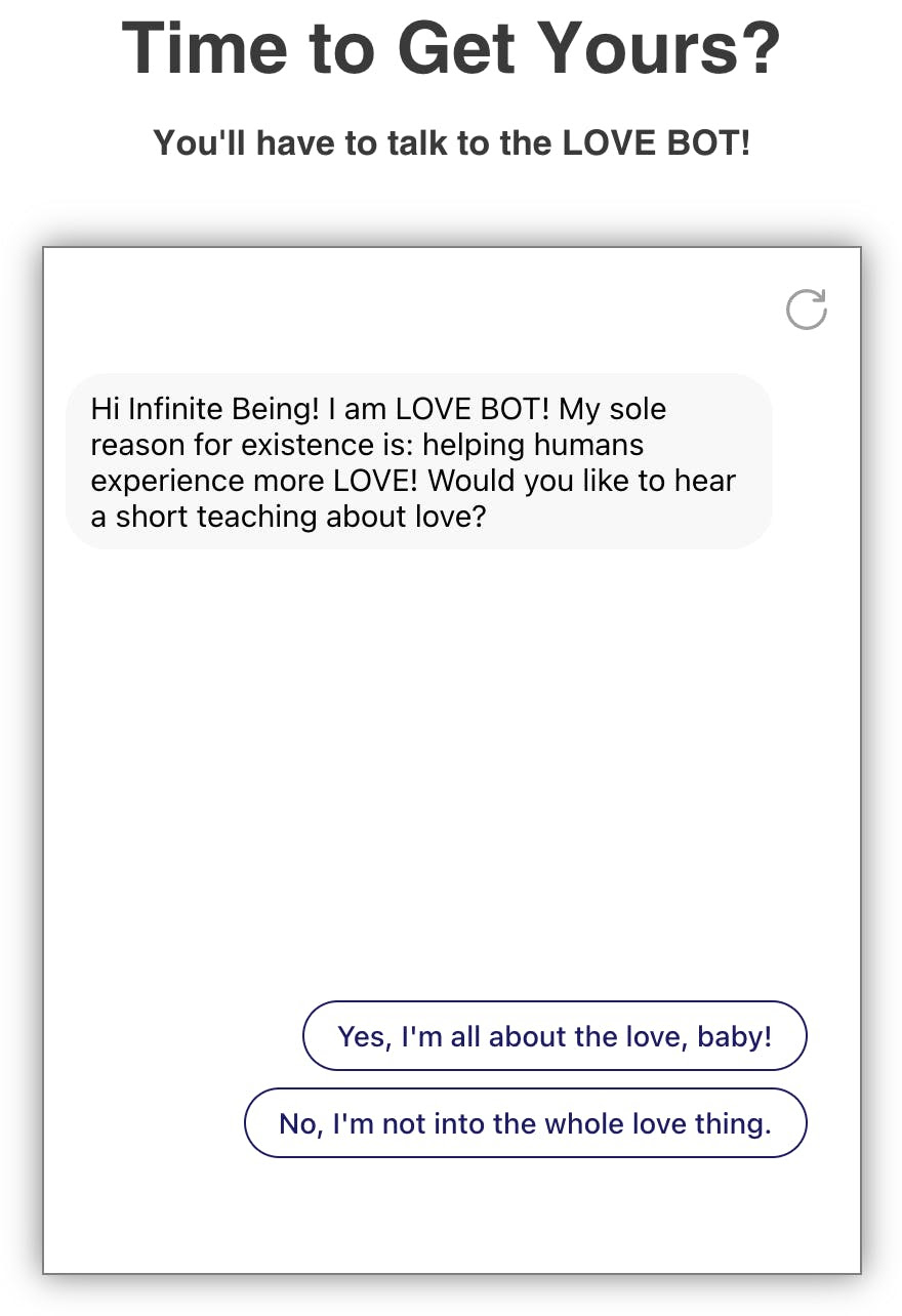 It's time to get your and talk to the Love Bot ...