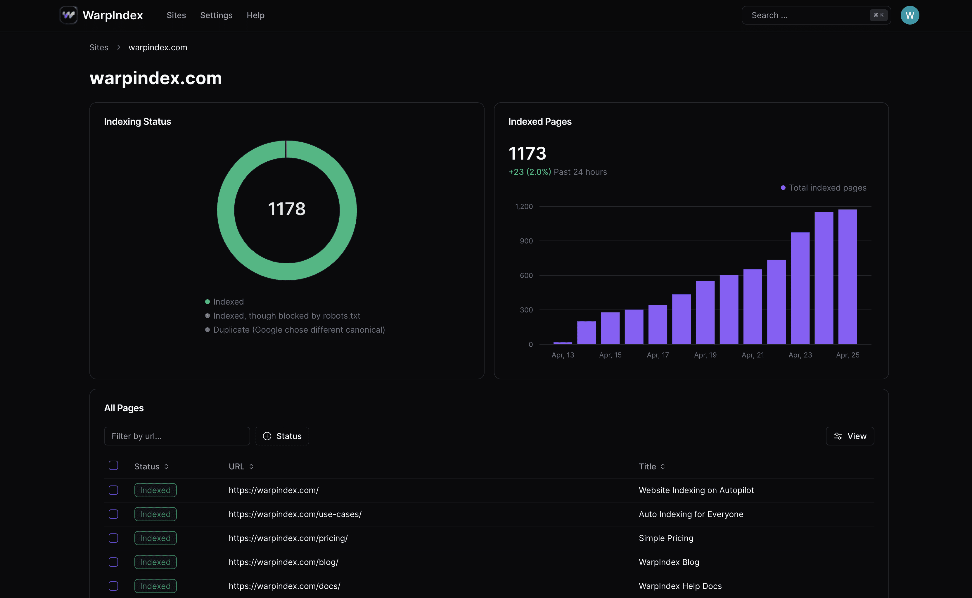 WarpIndex crawls your sites and pushes them to Google index automatically to vastly improve the time taken and probability of getting indexed.
