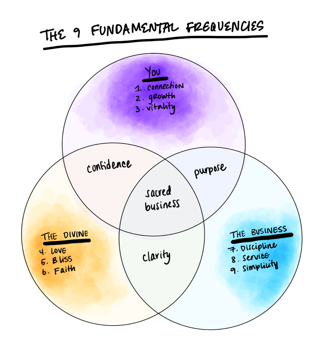 We identified nine in total, which we would soon call The 9 Fundamental Frequencies of Sacred Business.