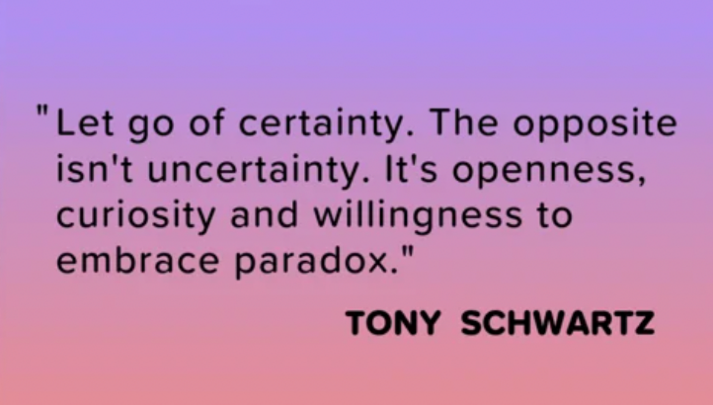 This does magic to your brain. It helps you release this sense of certainty and the need to be right, knowing that both extremes can co-exist. And then the real question becomes not "what is true?" but "what serves you now?"