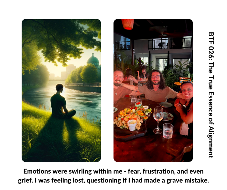 I grasped the true essence of alignment, realizing that striving to feel good all the time essentially cuts life in half, and that was definitely not my goal.